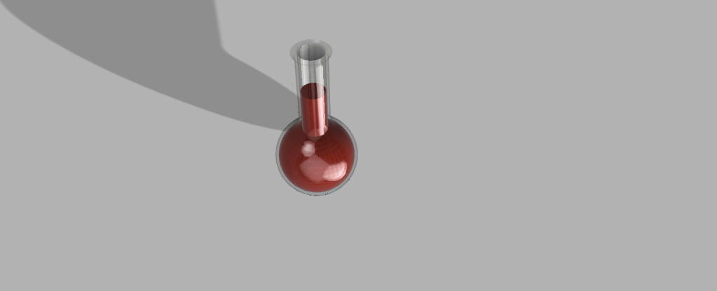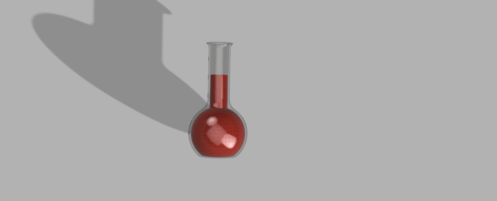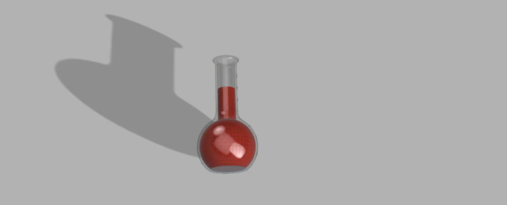 The third model was a glass or plastic flask with a red liquid inside. In order to create the flask, I first designed half of the flask. I then designed half of the liquid inside of the flask. I then selected the half designs and rotated them both on the y-axis 360 degrees to create the 3 dimensional shape. Last, I made the outer shape glass and the inner shape red and rendered it.