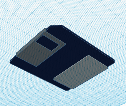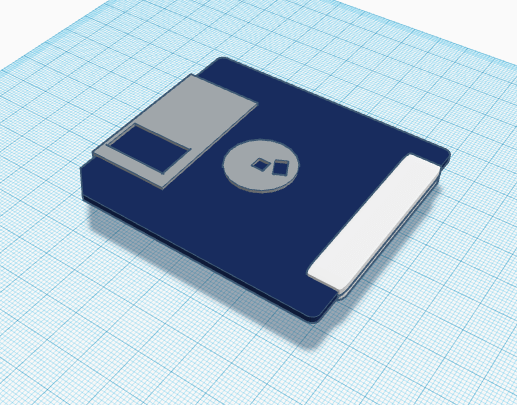 The third shape, the floppy disk was slightly harder to make than the first two shapes. The floppy disk was made from a series of different cubes and cylinders. When creating the floppy disk I learned how to round the sides of a cube and how to center the circle on top to the middle of the cube.