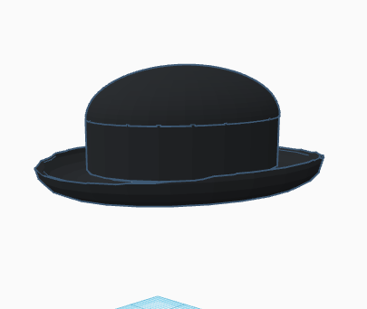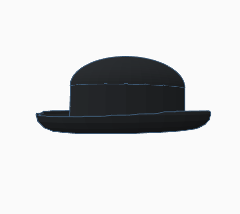 When designing the bowler hat, I first found an image on google that I could roughly base my hat’s unique shape to. The only important part to choosing the photo is that it could not be taken at any angle. I then lined up 2 ellipses to the image and extruded them to create a box hat type shape. Next, I filleted the sides to create the curved portions and shelled both in order to create the rough shape. However, the rim was not cut properly. In order to cut the rim, I used a fit point spline. I drew the shape of the rim and then extruded the shape through each side of the hat. This left a hole through the whole hat. To finish off the shape, I extruded the shape above the hole down to fit and connect with the rim. I then changed the texture and color to black leather in order to match the example from class.