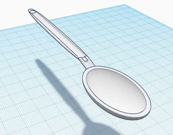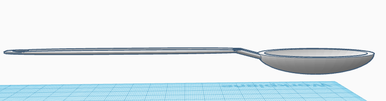 The spoon is where I had my first troubles using Tinker CAD. However, I believe I did the best I could with the system at hand. The bowl of the spoon was the easiest part of the object to make. The curve between the bowl and the handle was the hardest part of the spoon to make. To make the curve I first used a cylinder. Second, I indented the cylinder using a void cylinder. Third, I tilted the new shape to match the curve on the spoon. Fourth, I lined the spoon bowl and the spoon handle to the curve, so that it would be centered. Fifth, I moved the handle slightly over the curve. Last, I used a void cylinder to cut out the overlapping portion of the handle.