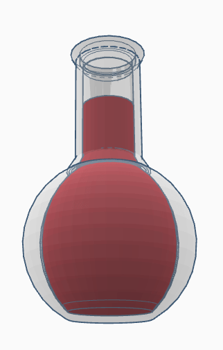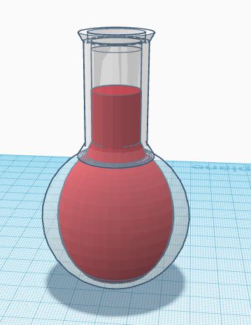 The flask is the object I had the most trouble with. The shape of the flask and liquid was not the challenging part of the object. I used simple shapes such as spheres, cylinders, and the occasional cone. However, I spent a great deal of time trying to get the lines of each shape to line up. I centered the shapes, lowered/raised the shapes, and I even redid the whole object in an attempt to clean up the lines; however, nothing was successful. In FreeCAD you are able to refine the shape however, in Tinker CAD I know of no such option. Because of this, the flask has many extra lines and does not look clean and uniform.