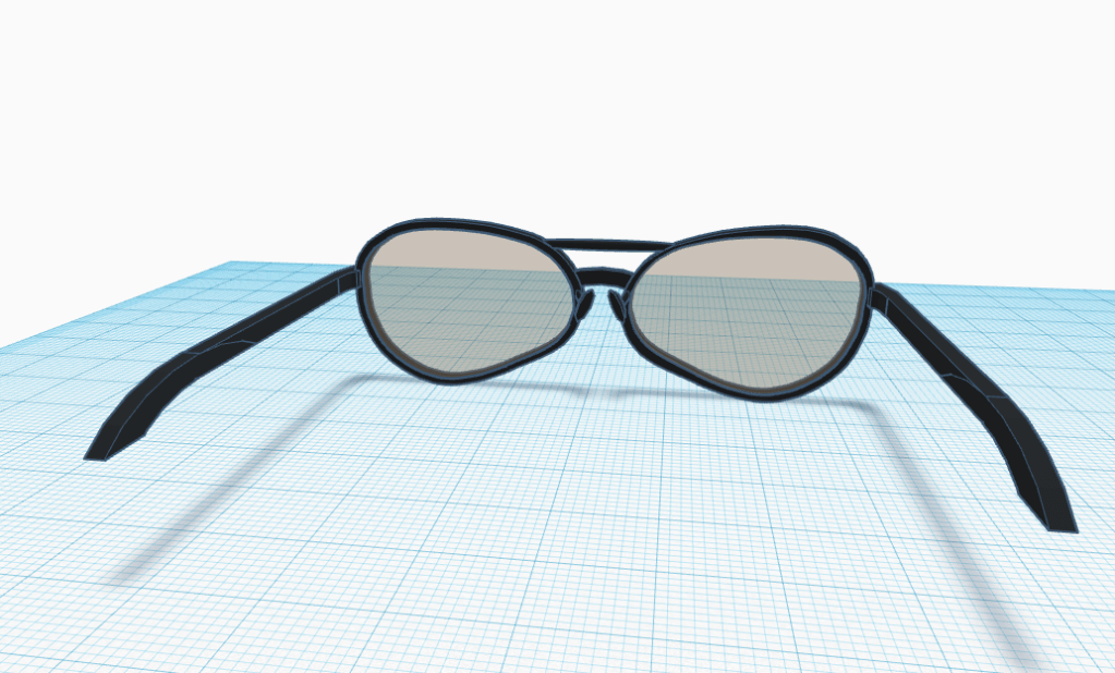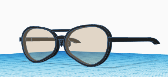 In order to make the aviators, I started by sketching the shape of the lens on an iPad with the sketch tool. The shape I drew is not perfectly symmetrical; however, the shape is pretty close. I then copy and pasted the shape to create a smaller version which would be turned into a void shape. I then did the same for the lens and lined them up with the frame. Next, I had to create the two nose bridges. I simply elongated the tube shape and cut them with a cube void. For the top bridge I then rounded out the shape. Then I made the portion that extends to the ear. I did this by using the letter “J” which was trimmed using a cube void. I again used another “J” which was trimmed by a cube void to create the downward curve at the end of the ear piece. Lastly, I used a diamond to create the nose guard. I did this by cutting the pyramid bottom portion of the diamond with a cube void. This created a great shape for the nose guards. I then attached them to the frame using small cylinders.